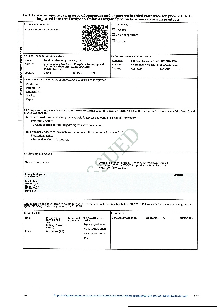 歐盟美國(guó)日本加拿大有機(jī)認(rèn)證證書(shū)