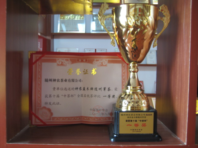 - 2013年8月,我公司選送的神農(nóng)益木牌隨州芽茶,榮獲第十屆“中茶杯”全國(guó)名優(yōu)茶評(píng)比一等獎(jiǎng)。