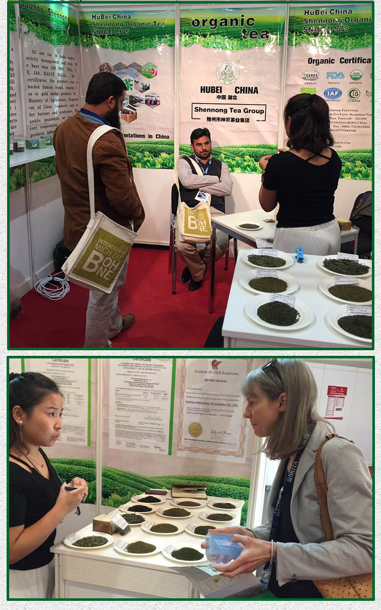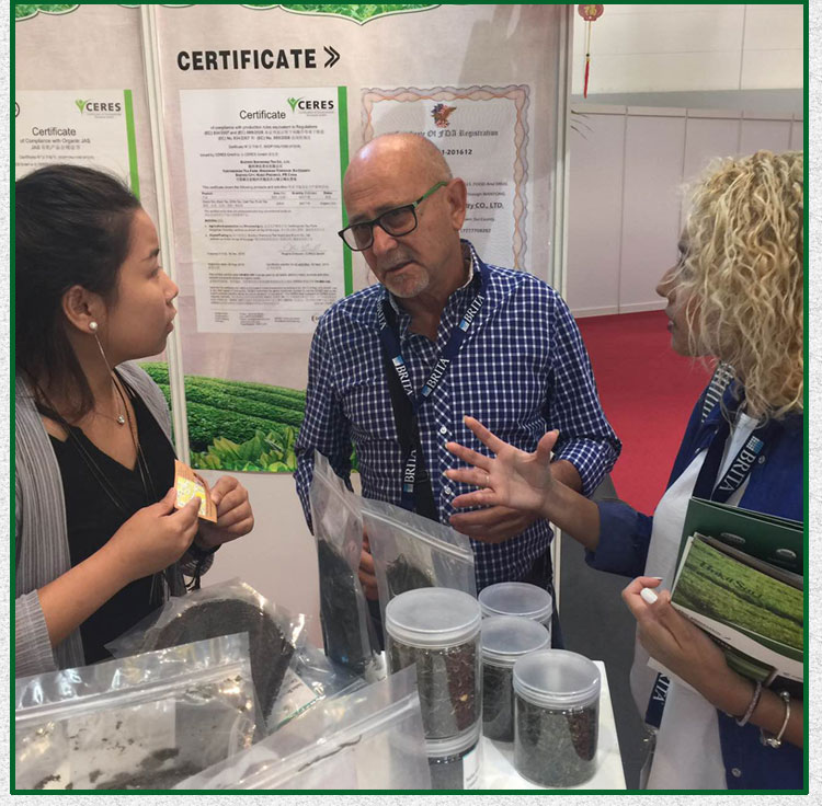 公司外貿(mào)工作人員在德國漢堡參加茶博會,下圖為展會現(xiàn)場一角: