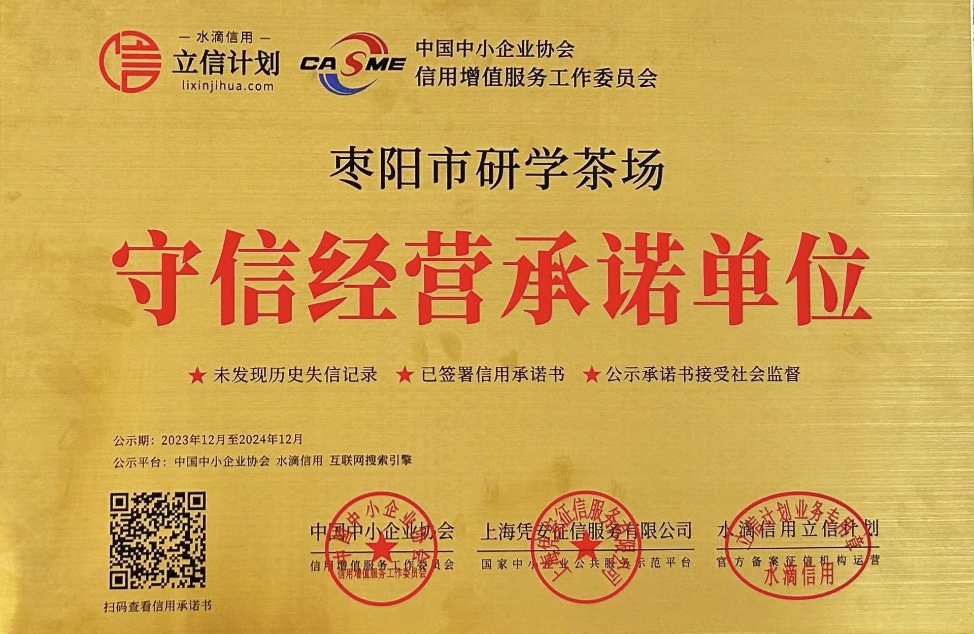 守信經(jīng)營承諾單位—棗陽市研學(xué)茶場(chǎng)
