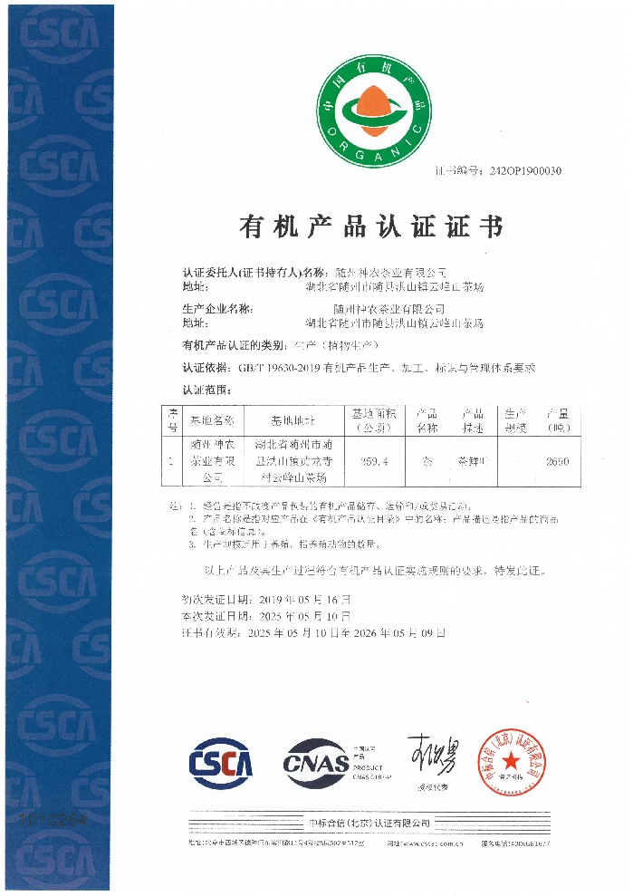 國(guó)標(biāo)有機(jī)認(rèn)證證書(shū)